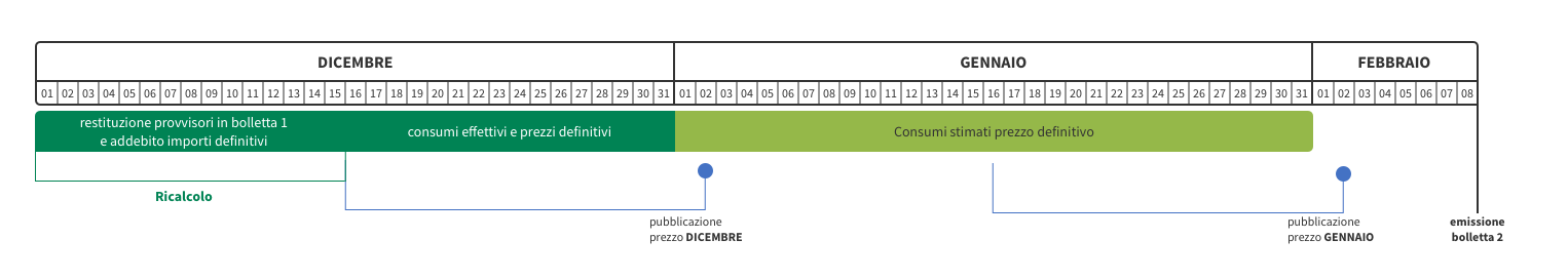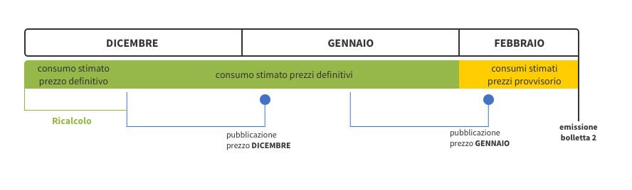 • periodo 16/12 – 31/01: addebito dei consumi stimati a prezzo definitivo